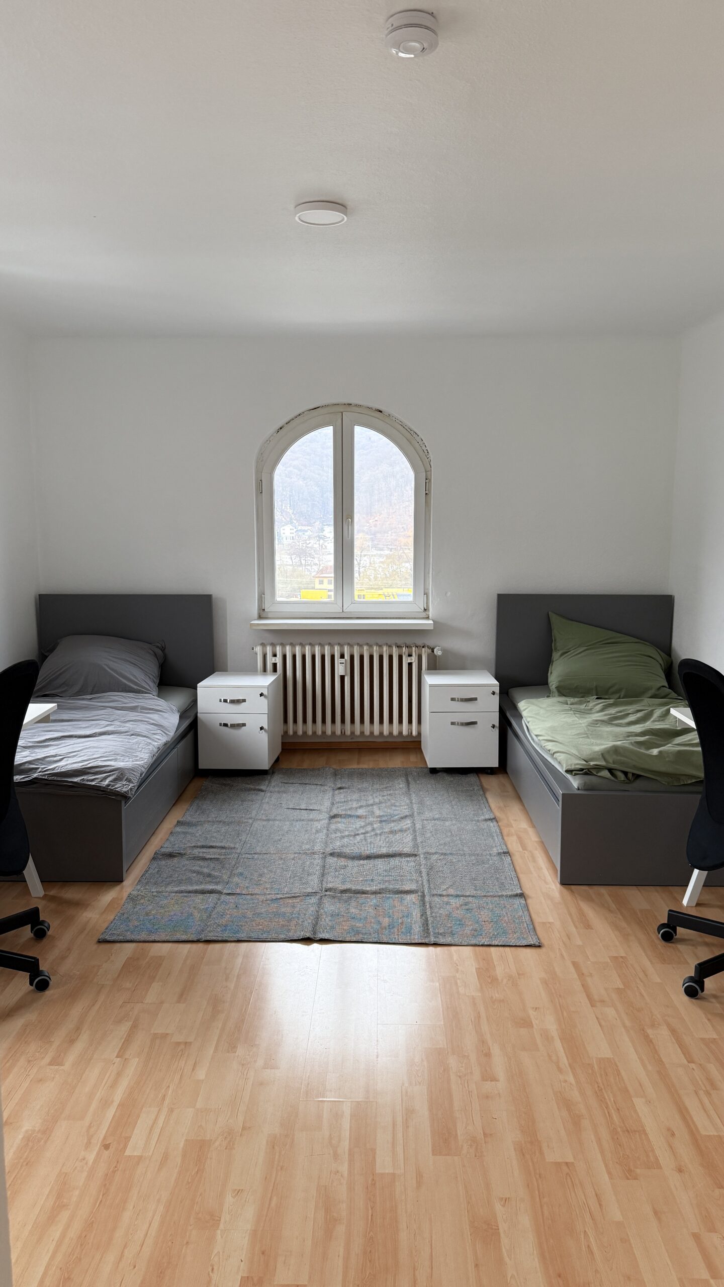 Bis auf ein einzelnes Zimmer mit ausgeprägter Dachschräge sind alle Zimmer als Doppelzimmer angelegt.
